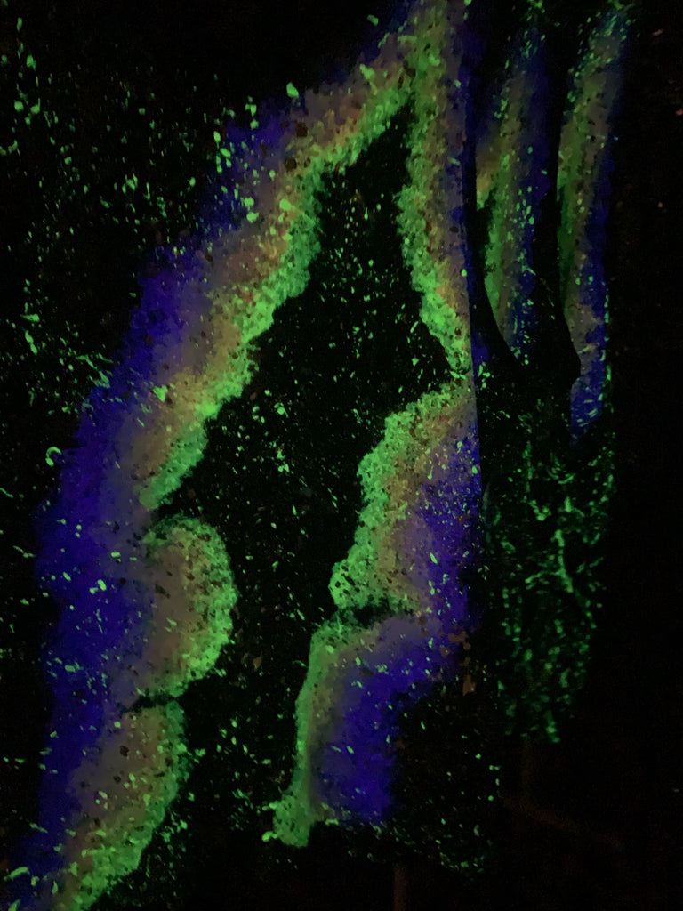 We take a 100% cotton unisex tank top and hand paint a colorful galaxy on the front, add a layer of glow in the dark pigment, and then scatter stars all over. Each one is an original piece of wearable art.