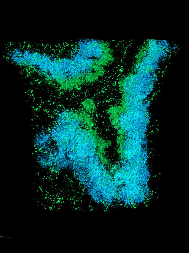 Green and Blue Cosmic Glow in the Dark Jean Jacket - Hand Painted, Upcycled Women's Denim Jacket