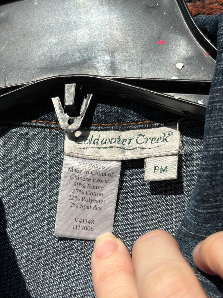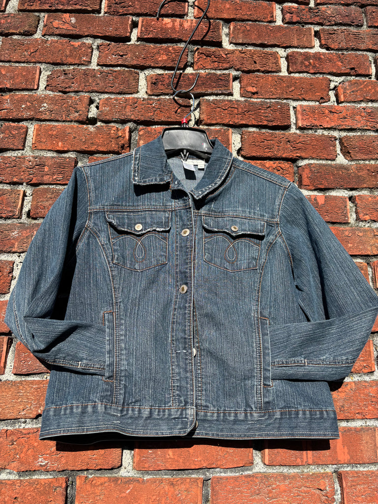 Upcycled Medium Denim Jacket - Green & Blue Cosmic Glow